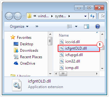 3. Once the System32 folder opens, rename your current icfgnt.dll file to icfgntOLD.dll.